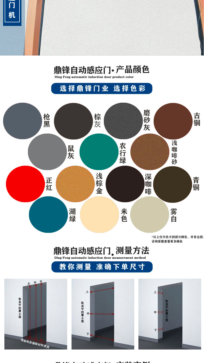 自动门门框尺寸:竖边、横边尺寸:100*165mm 横梁尺寸:200*165mm 扣板分为亚洲扣板和欧洲扣板可满足市面所有机型