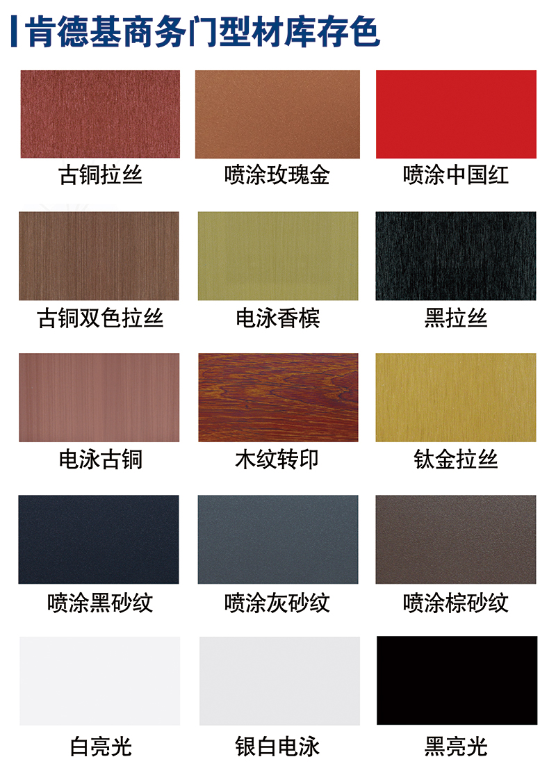 表面处理:电泳三道喷砂工艺或瑞士氟碳喷涂工艺(可定做),颜色丰富。